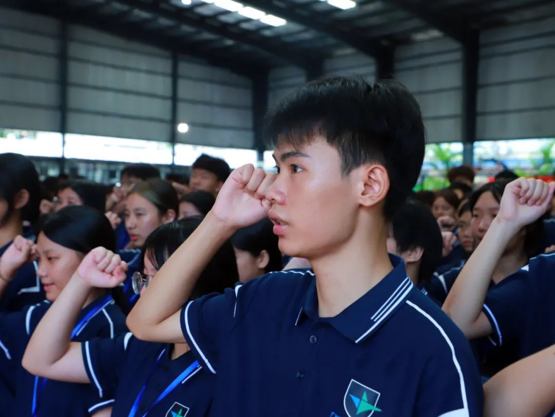 随后的 “梦想起誓” 环节,4000 名新生高举右拳,庄严的宣誓仪式凝聚起青春力量。铮铮誓言如下: